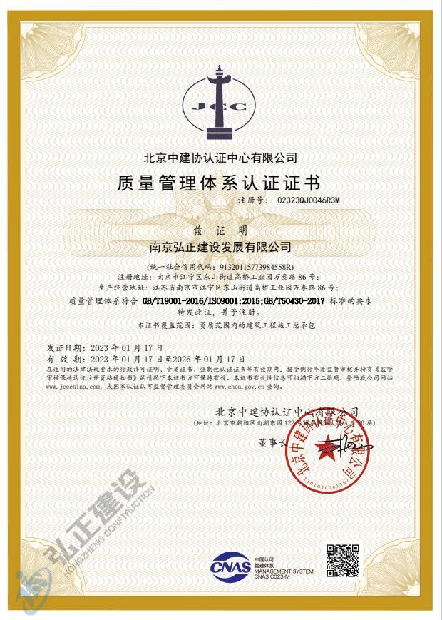 质量管理体系认证证书
